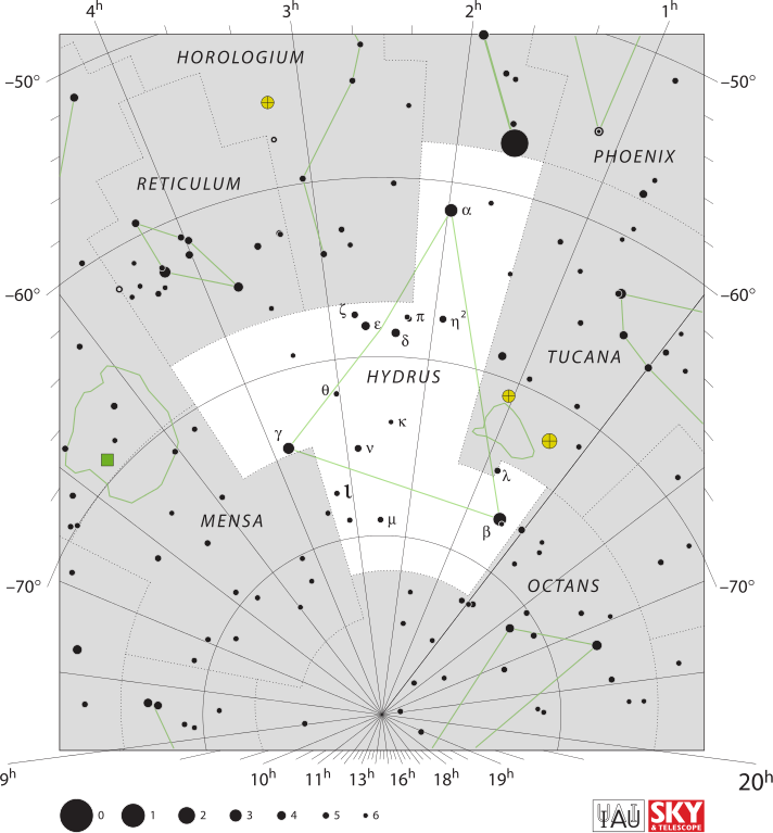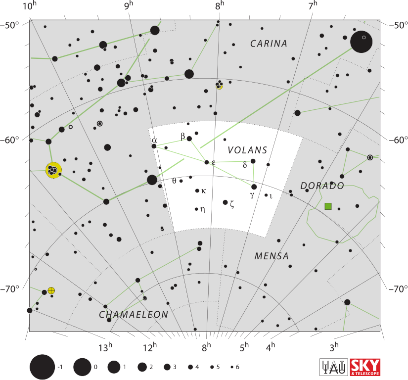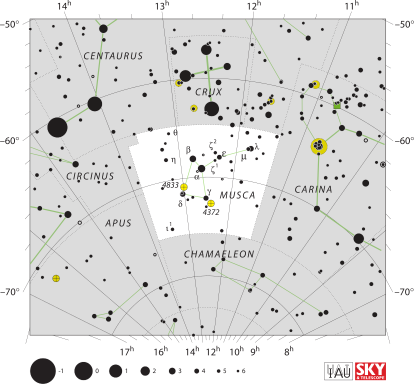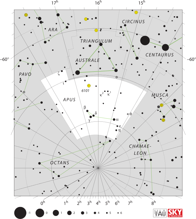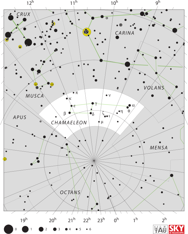 Johann Bayer übernahm dann 1603 in seiner Uranometria einige Konstellationen aus Himmelsgloben des Petrus Plancius, die auf die niederländischen Navigatoren Pieter Dirkszoon Keyser und Frederick de Houtman zurückgingen. Die Astronomen Johannes Hevelius und Nicolas-Louis de Lacaille fügten weitere hinzu.