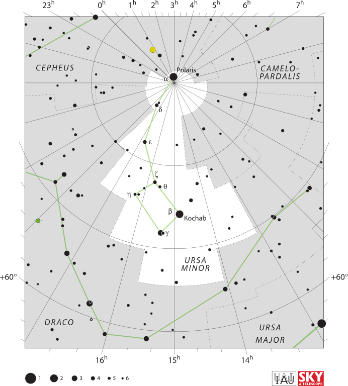 Auf der Nordhalbkugel helfen Großer Wagen und Kleiner Wagen den Polarstern zu finden, wobei der Große Wagen als Asterismus kein eigenes Sternbild ist, sondern nur ein Teil des Großen Bären. Auch die Kassiopeia, das "Himmels-W" zieht nach Norden hin geöffnet am Firmament entlang.