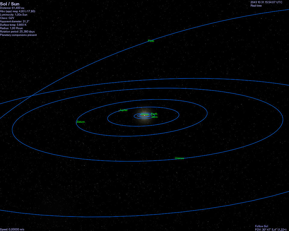 Heute umkreisen acht Planeten unseren Zentralstern, seit die Internationale Astronomische Union (IAU) den früher als Planet geführten Pluto im Jahr 2006 zum Zwergplanten herabstufte. Die Entfernungen dabei sind riesig. Der mittlere Abstand zwischen Sonne und Erde beträgt ca. 150 Millionen Kilometer, oder eine Astronomische Einheit (AU), während Saturn schon etwa zehnmal so weit von der Sonne entfernt ist und Neptun ca. das 30-fache.